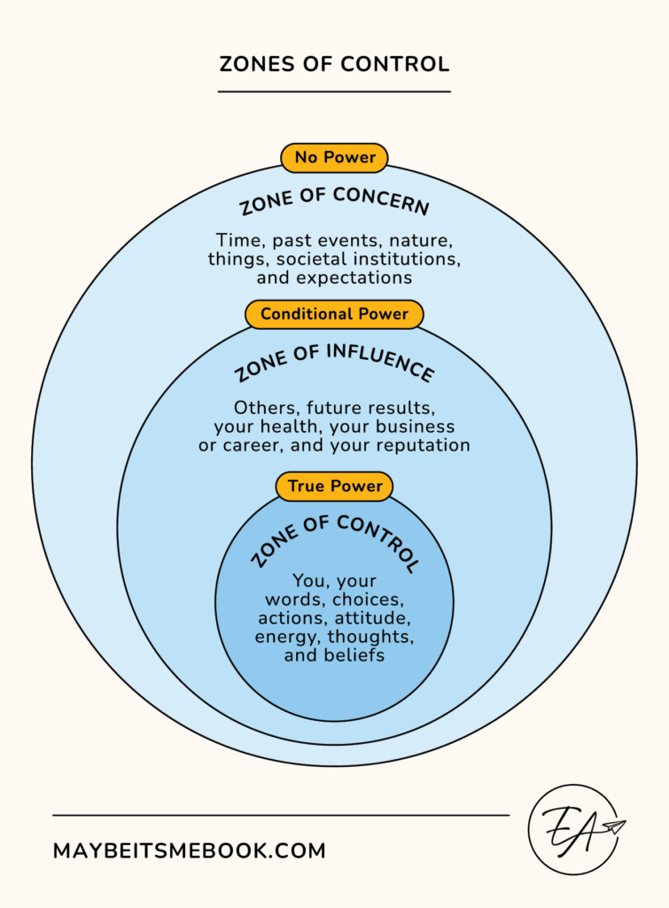This visual clarifies the difference between concern, influence, and control. It helps you redirect energy away from what you can’t change and toward the choices, actions, and attitudes that are fully yours.